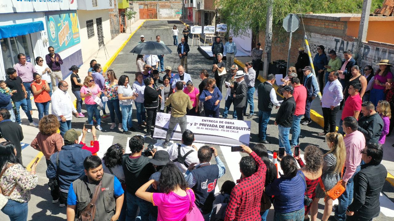 La obra de las calles 1ª y 2ª Privada de Mexquitic abarca mil 135 metros cuadrados de nueva pavimentación, por los que se pide a la ciudadanía de la zona norte de San Luis Potosí que circule con precaución y prudencia en esta zona.