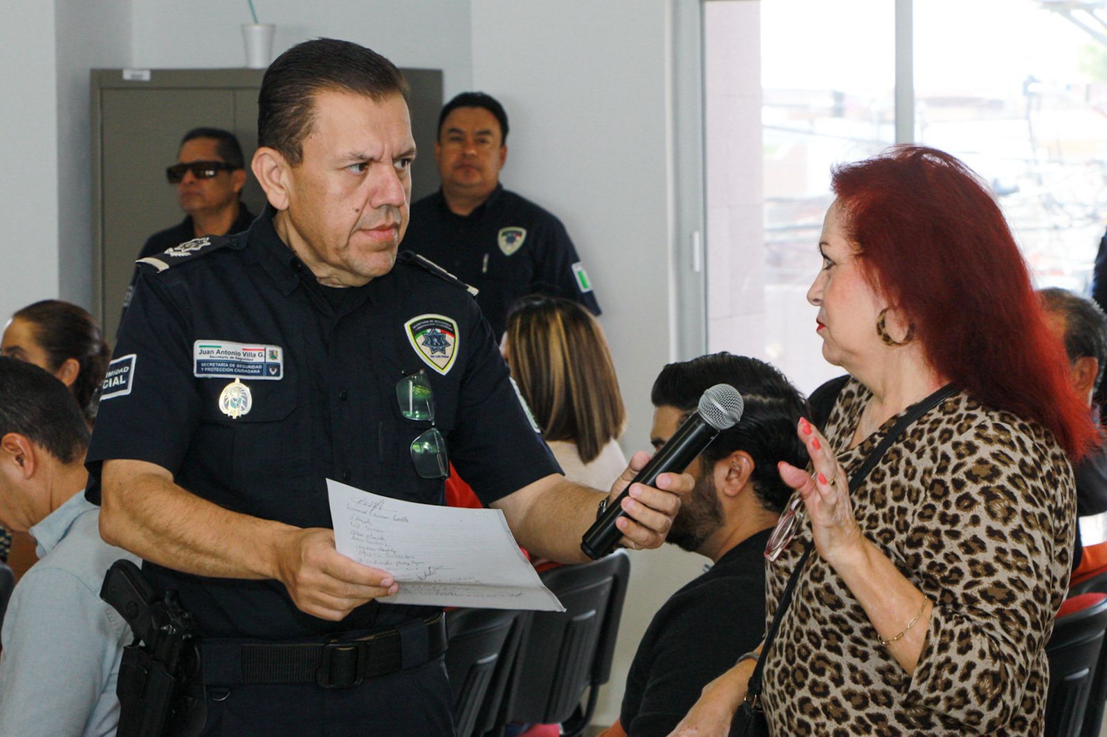 En esta ocasión, una de las integrantes del Comité entregó al secretario de Seguridad y Protección Ciudadana, Comisario Juan Antonio Villa Gutiérrez, una petición para incrementar la vigilancia en calles como Abasolo, Comonfort, Primero de Mayo y Lerdo de Tejada, señalando de manera abierta la problemática que enfrenta en su entorno.