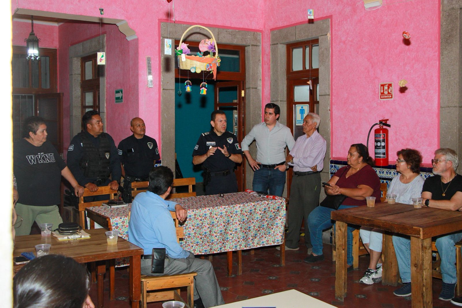 El titular de la Secretaría de Seguridad y Protección Ciudadana (SSPC), Comisario Juan Antonio Villa Gutiérrez, encabezó una reunión informativa con habitantes del Centro Histórico, en seguimiento a la solicitud hecha durante la quinta sesión del Consejo de Seguridad para atender las necesidades de mayor vigilancia.