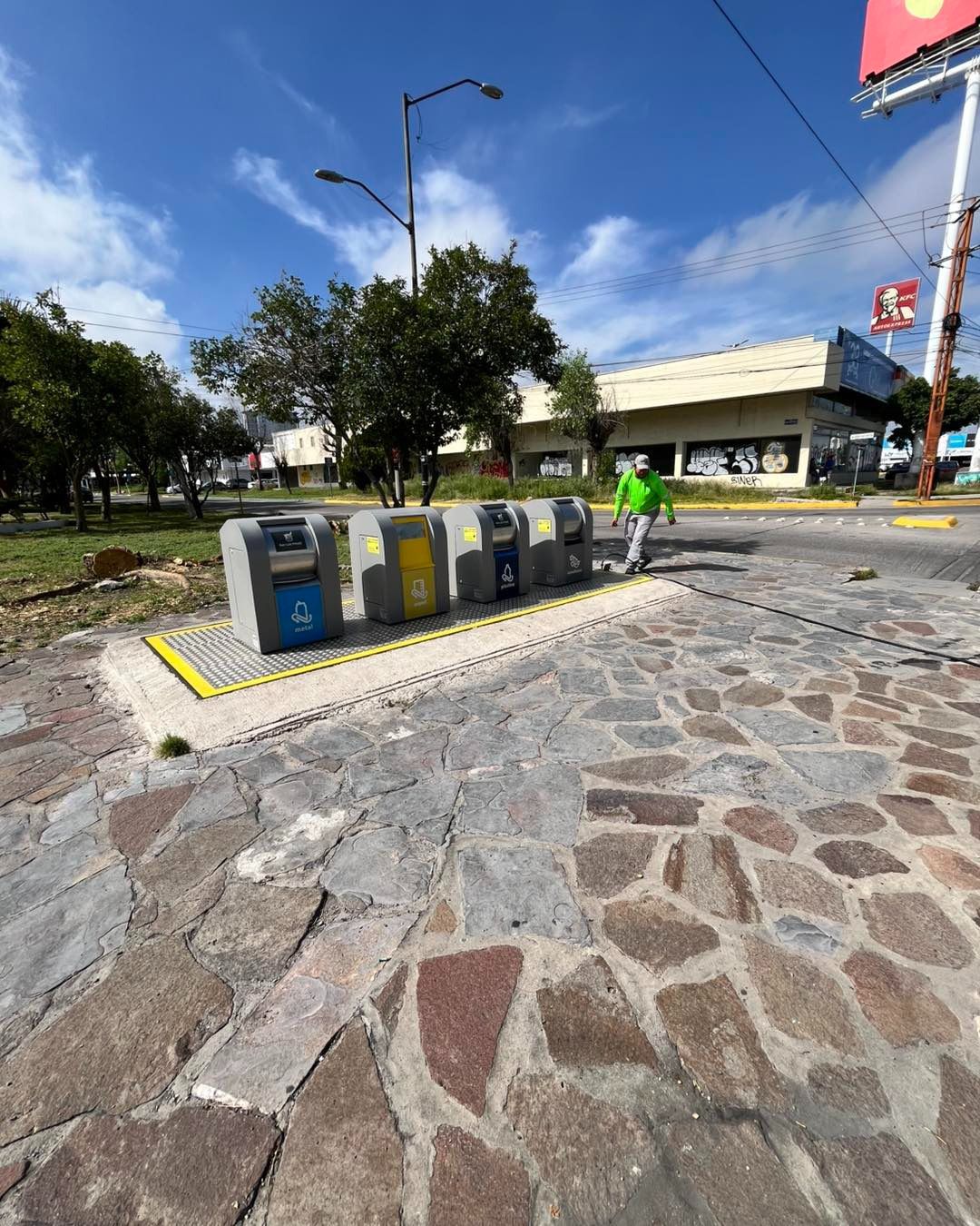 El Ayuntamiento de la Capital tiene instalados siete contenedores soterrados de recolección de residuos reciclables, disponibles para uso permanente, con el fin de fomentar el reciclaje y la separación de basura urbana, los depósitos están diseñados para depositar materiales como PET, aluminio, cartón y envolturas; cada tapa cuenta con gráficos ilustrativos para identificar fácilmente el tipo de residuo que debe depositarse.