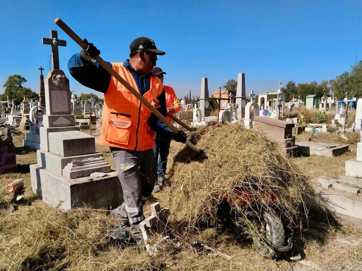 La Dirección de Servicios Municipales informó con la participación de diversas áreas, ya se ha retirado gran cantidad de maleza y basura, además de realizar la poda de árboles en el interior y en el exterior del panteón para retirar las ramas que puedan representar un riesgo para quienes acudan a visitar a sus difuntos.